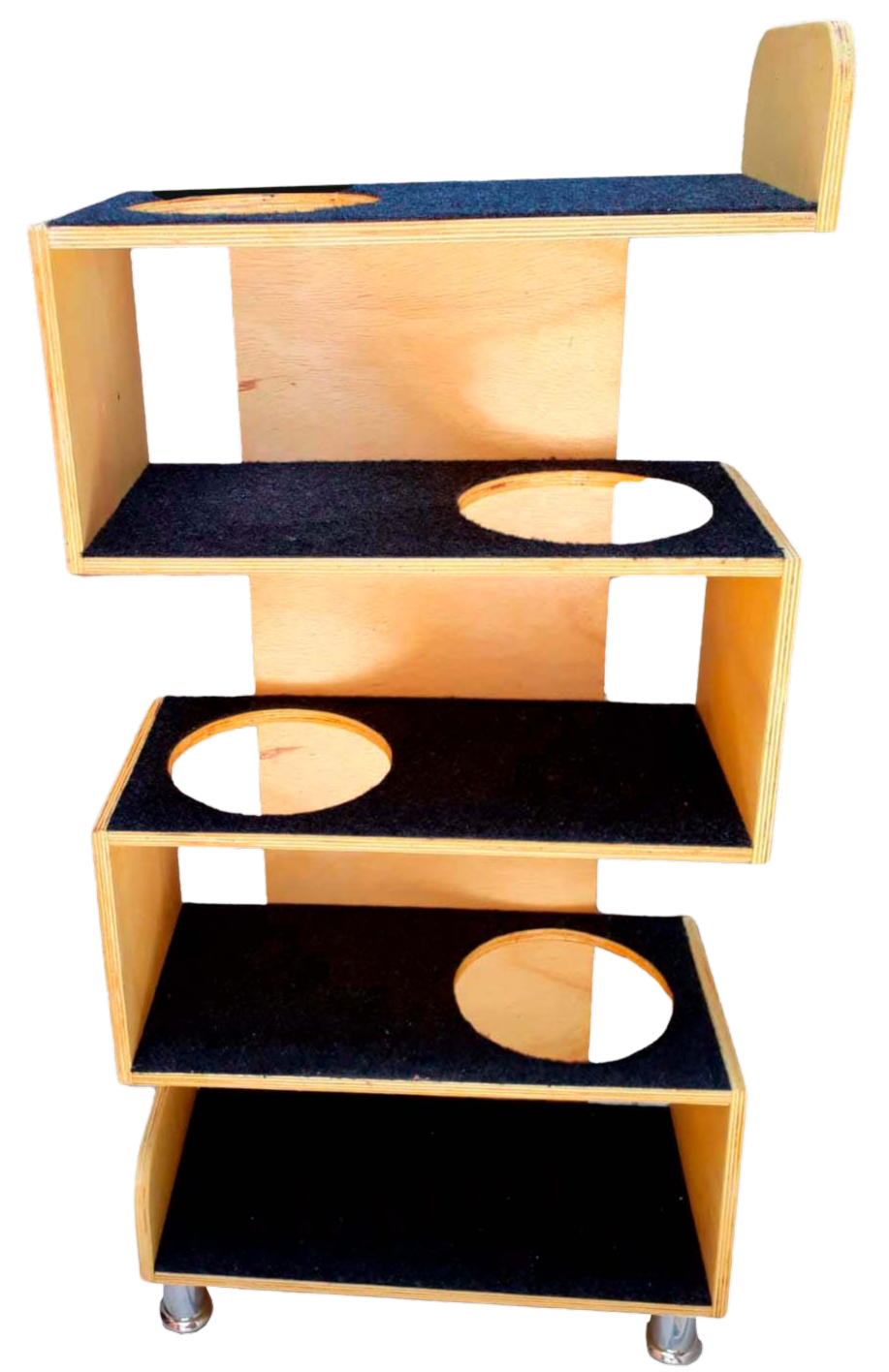 Fabricada em compensado sumaúma, material de alta qualidade, a torre é resistente e durável, garantindo que seu gato possa brincar e relaxar sem preocupações. As prateleiras, revestidas com carpete, são projetadas para proporcionar diferentes níveis de altura, estimulando a curiosidade e o instinto natural de escalada dos gatos.